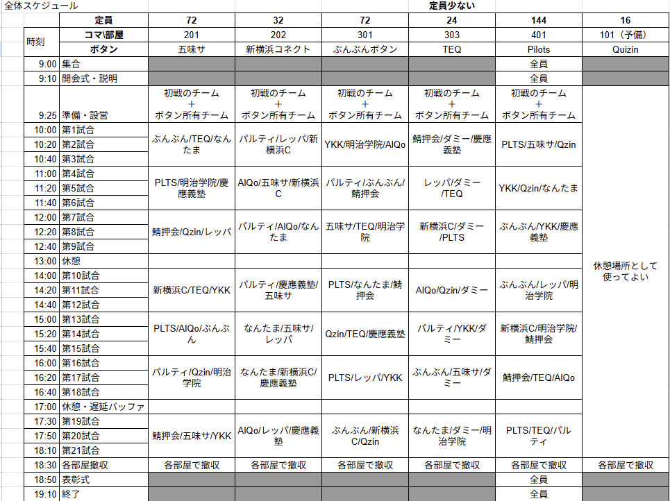 タイムスケジュールと部屋割り